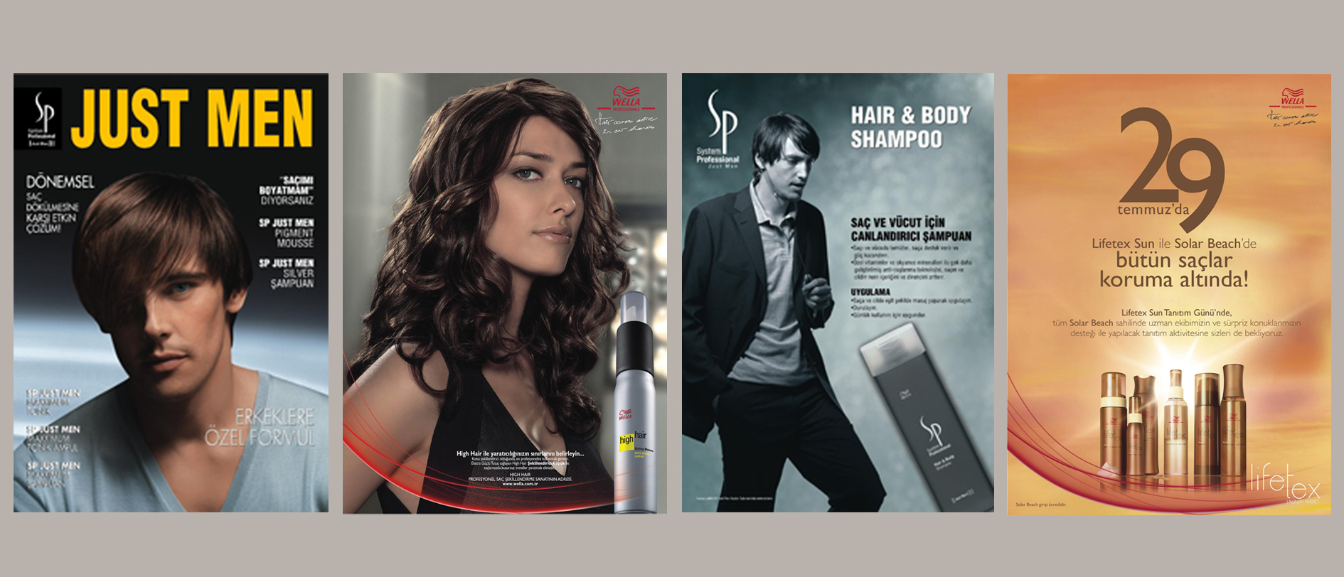Bir dünya devi olan Wella Professionals'ın çatısı altındaki bir çok markanın organizayon/etkinliklerinden, Türkiye çapındaki bir çok kuaförün mağaza iç düzeni ve giydirilmesine kadar, basılı ve dijital işlerinde hizmet verdik.